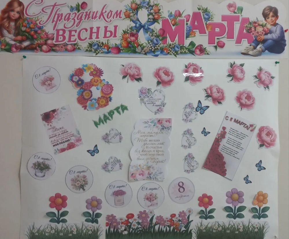 Ребята совместно с воспитателями трудились над созданием настоящей праздничной стенгазеты. Каждый цветочек, каждый яркий штрих – всё это было сделано с любовью и искренним желанием порадовать мам, бабушек, сестер и всех замечательных женщин.