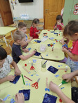 Выполнение снежинок из бумаги. Каждый ребенок создал свою уникальную снежинку, украшая ею стены группы.