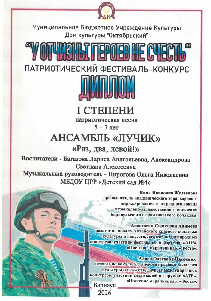 Муниципальное бюджетное дошкольное образовательное учреждение Центр развития ребенка - детский сад №4 "Одуванчик" города Новоалтайска Алтайского края