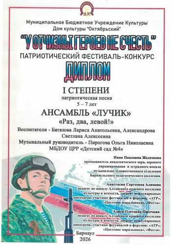 Муниципальное бюджетное дошкольное образовательное учреждение Центр развития ребенка - детский сад №4 "Одуванчик" города Новоалтайска Алтайского края