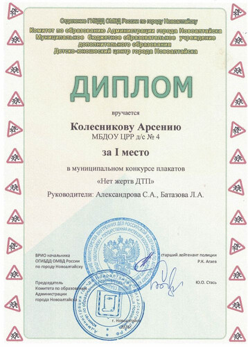 Муниципальное бюджетное дошкольное образовательное учреждение Центр развития ребенка - детский сад №4 "Одуванчик" города Новоалтайска Алтайского края