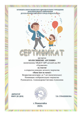 Муниципальное бюджетное дошкольное образовательное учреждение Центр развития ребенка - детский сад №4 "Одуванчик" города Новоалтайска Алтайского края
