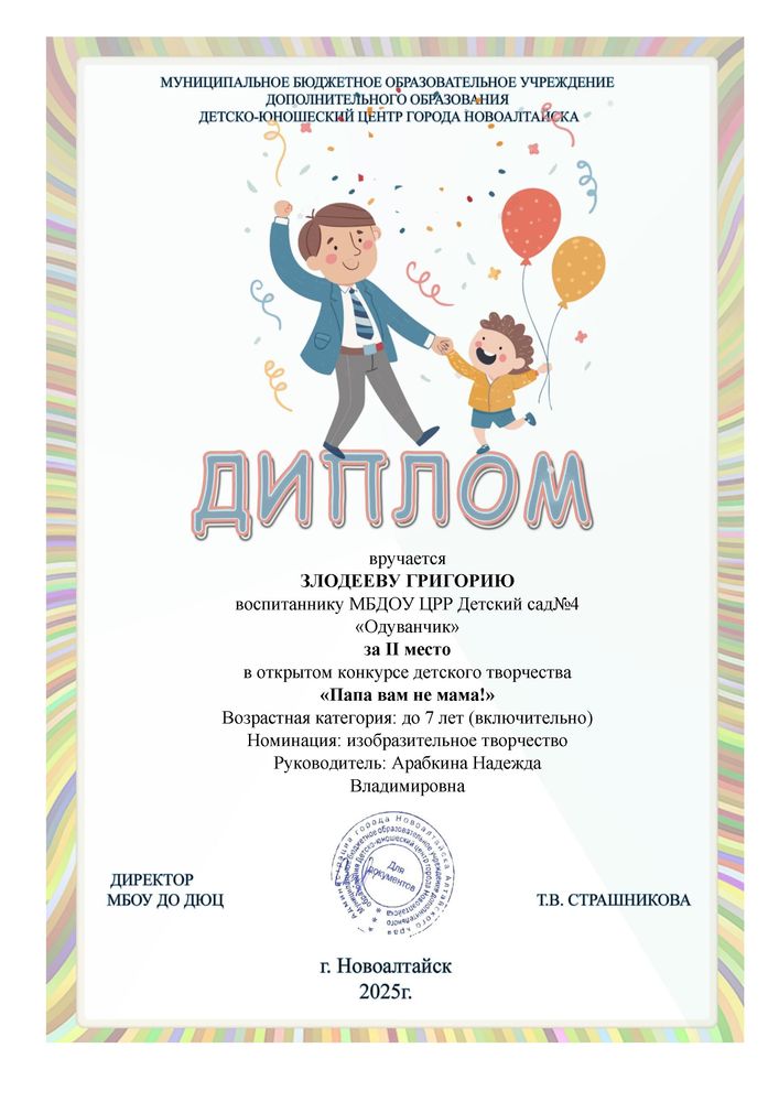 Муниципальное бюджетное дошкольное образовательное учреждение Центр развития ребенка - детский сад №4 "Одуванчик" города Новоалтайска Алтайского края