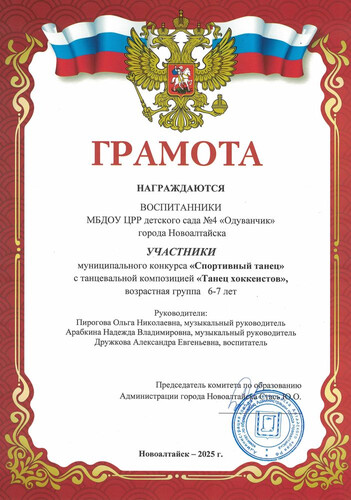 Муниципальное бюджетное дошкольное образовательное учреждение Центр развития ребенка - детский сад №4 "Одуванчик" города Новоалтайска Алтайского края