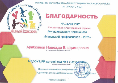 Муниципальное бюджетное дошкольное образовательное учреждение Центр развития ребенка - детский сад №4 "Одуванчик" города Новоалтайска Алтайского края