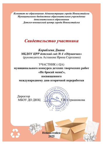 Муниципальное бюджетное дошкольное образовательное учреждение Центр развития ребенка - детский сад №4 "Одуванчик" города Новоалтайска Алтайского края