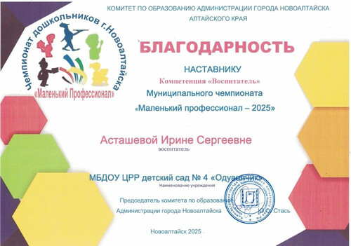 Муниципальное бюджетное дошкольное образовательное учреждение Центр развития ребенка - детский сад №4 "Одуванчик" города Новоалтайска Алтайского края