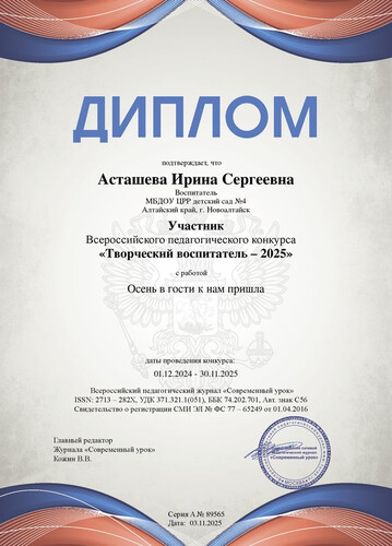 Муниципальное бюджетное дошкольное образовательное учреждение Центр развития ребенка - детский сад №4 "Одуванчик" города Новоалтайска Алтайского края