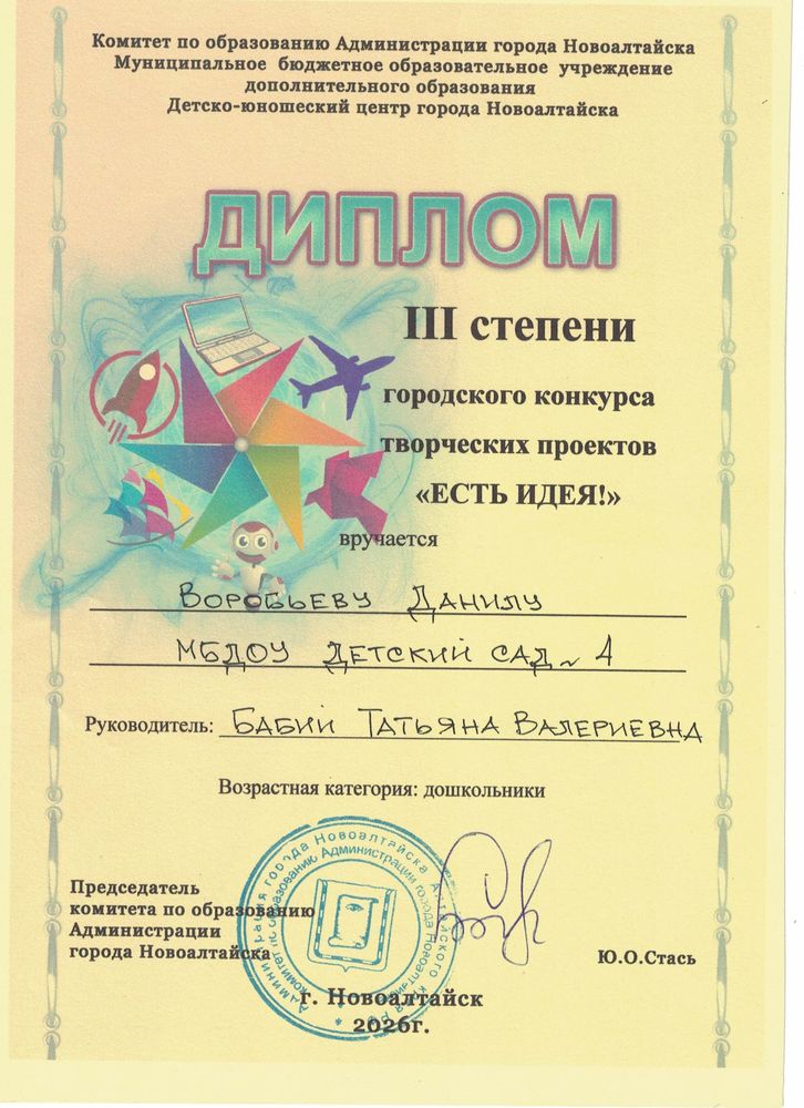 Муниципальное бюджетное дошкольное образовательное учреждение Центр развития ребенка - детский сад №4 "Одуванчик" города Новоалтайска Алтайского края