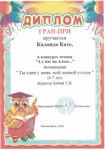 Муниципальное бюджетное дошкольное образовательное учреждение Центр развития ребенка - детский сад №4 "Одуванчик" города Новоалтайска Алтайского края