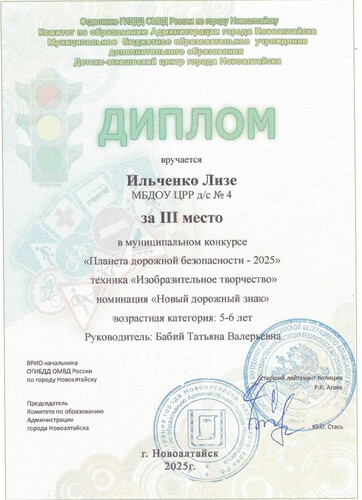 Муниципальное бюджетное дошкольное образовательное учреждение Центр развития ребенка - детский сад №4 "Одуванчик" города Новоалтайска Алтайского края
