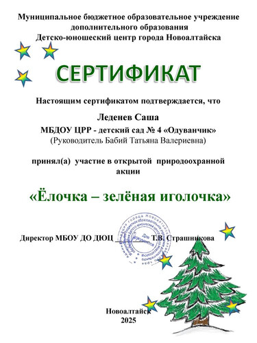 Муниципальное бюджетное дошкольное образовательное учреждение Центр развития ребенка - детский сад №4 "Одуванчик" города Новоалтайска Алтайского края