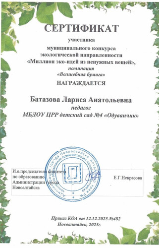 Муниципальное бюджетное дошкольное образовательное учреждение Центр развития ребенка - детский сад №4 "Одуванчик" города Новоалтайска Алтайского края