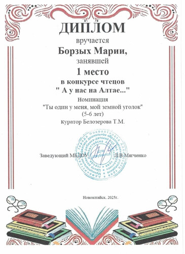 Муниципальное бюджетное дошкольное образовательное учреждение Центр развития ребенка - детский сад №4 "Одуванчик" города Новоалтайска Алтайского края