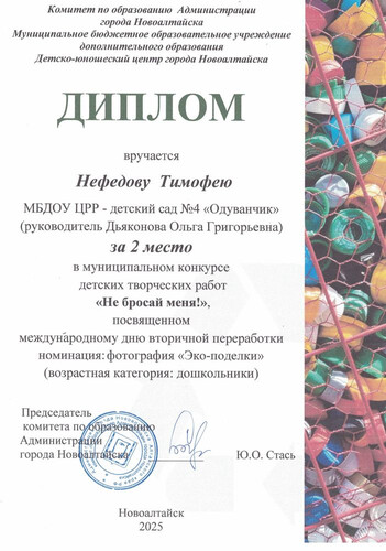 Муниципальное бюджетное дошкольное образовательное учреждение Центр развития ребенка - детский сад №4 "Одуванчик" города Новоалтайска Алтайского края