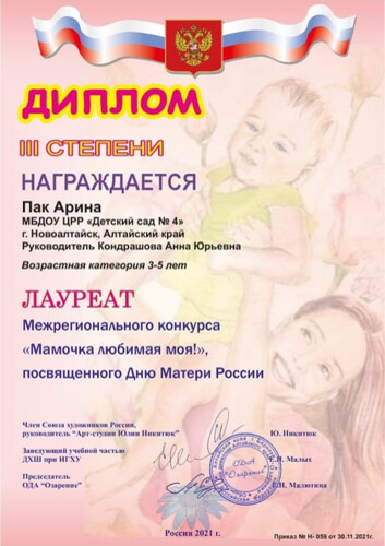 Муниципальное бюджетное дошкольное образовательное учреждение Центр развития ребенка - детский сад №4 "Одуванчик" города Новоалтайска Алтайского края