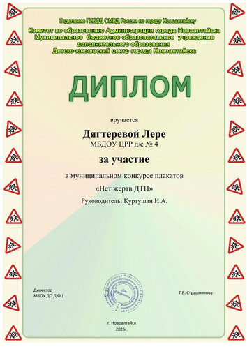 Муниципальное бюджетное дошкольное образовательное учреждение Центр развития ребенка - детский сад №4 "Одуванчик" города Новоалтайска Алтайского края