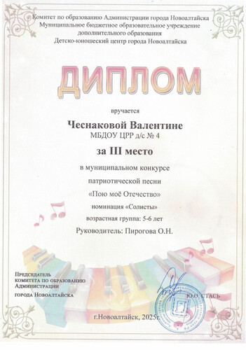 Муниципальное бюджетное дошкольное образовательное учреждение Центр развития ребенка - детский сад №4 "Одуванчик" города Новоалтайска Алтайского края
