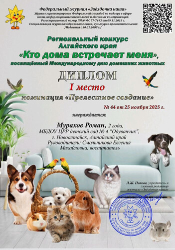 Муниципальное бюджетное дошкольное образовательное учреждение Центр развития ребенка - детский сад №4 "Одуванчик" города Новоалтайска Алтайского края