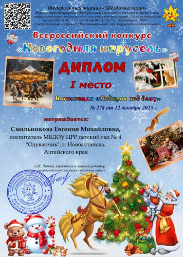 Муниципальное бюджетное дошкольное образовательное учреждение Центр развития ребенка - детский сад №4 "Одуванчик" города Новоалтайска Алтайского края