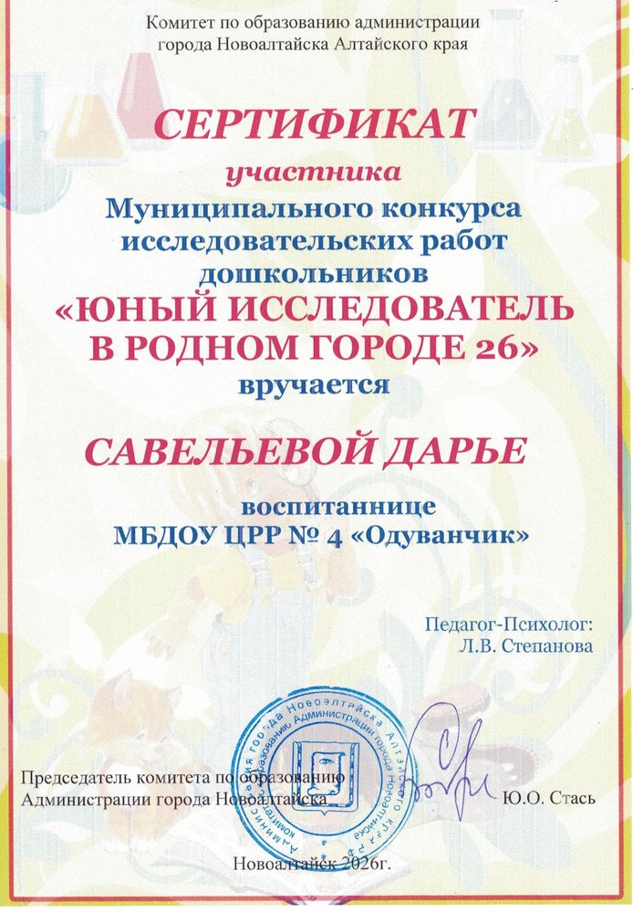 Муниципальное бюджетное дошкольное образовательное учреждение Центр развития ребенка - детский сад №4 "Одуванчик" города Новоалтайска Алтайского края
