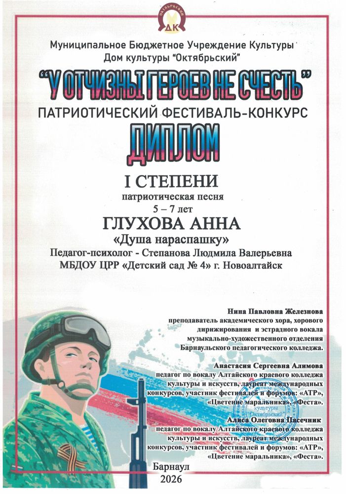 Муниципальное бюджетное дошкольное образовательное учреждение Центр развития ребенка - детский сад №4 "Одуванчик" города Новоалтайска Алтайского края