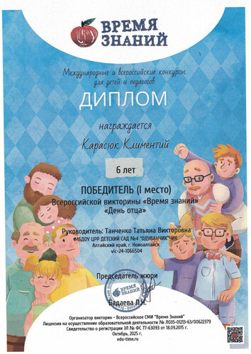 Муниципальное бюджетное дошкольное образовательное учреждение Центр развития ребенка - детский сад №4 "Одуванчик" города Новоалтайска Алтайского края