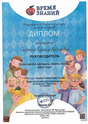 Муниципальное бюджетное дошкольное образовательное учреждение Центр развития ребенка - детский сад №4 "Одуванчик" города Новоалтайска Алтайского края