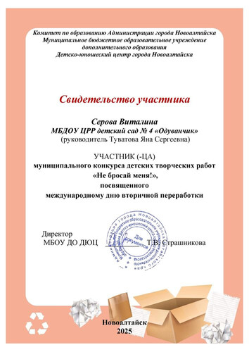 Муниципальное бюджетное дошкольное образовательное учреждение Центр развития ребенка - детский сад №4 "Одуванчик" города Новоалтайска Алтайского края