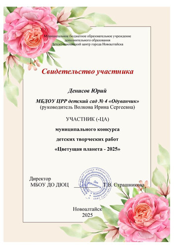 Муниципальное бюджетное дошкольное образовательное учреждение Центр развития ребенка - детский сад №4 "Одуванчик" города Новоалтайска Алтайского края