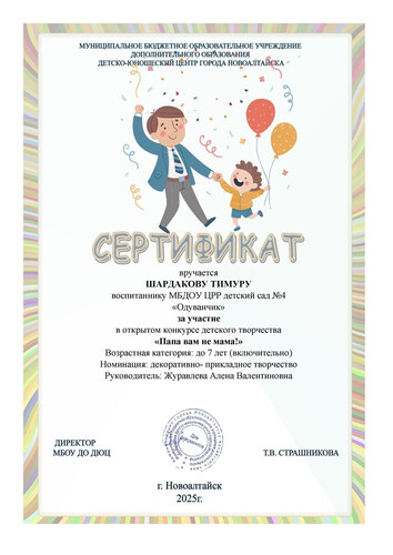 Муниципальное бюджетное дошкольное образовательное учреждение Центр развития ребенка - детский сад №4 "Одуванчик" города Новоалтайска Алтайского края